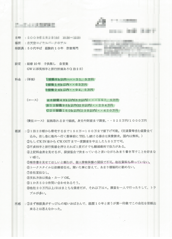 C社の調査料金の資料